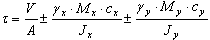 Mx, My, V - Bending moments and the force at the gravity center of the critical area
