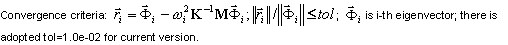 , where i = 1, 2, …, N; k - is the iteration number, N - number of modes (user defined ). The basis reduction method does not produce the convergence check, since it is not the iterative approach, although it is a kind of Ritz method. The number of master DOFs needs to be increased to improve the result precision.