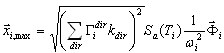 where K, M - stiffness and mass matrices, Γ - mass participation factor, Sa - spectra acceleration, T - period, i - mode number, k - coefficient of spectrum scaling, dir - index of input seismic motion direction (dir = X,Y,Z), x - displacement vector for maximum reaction of i-mode.