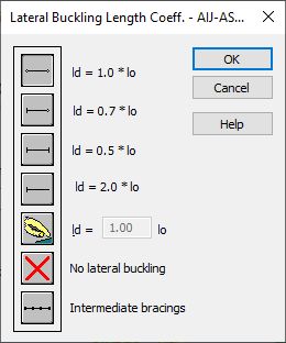 This option is used to define the appropriate distances of member sections protected against torsion, i.e. lateral buckling length. This option is available after pressing one of the following buttons: Upper Flange or Lower Flange in the Lateral Buckling Parameters field of the Member Definition - Parameters dialog box