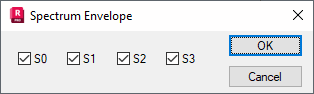 If the assumed structure site is unknown, it is possible to perform calculations taking the spectrum envelope for selected locations into consideration. Select the ground type option Envelope. Click Parameters to define which of the sites are to be considered in the spectrum envelope (for the code PS 92 / AFPS the following selection is possible: S0, S1, S2 or S3, for Eurocode 8: A, B, C, D or E).