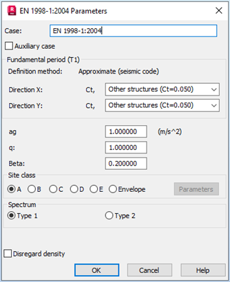 To complete the seismic analysis according to the rules given in a code, define the following parameters.