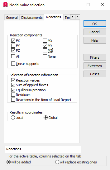 You can select either local or global coordinate systems in which the obtained reaction values will be presented.