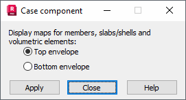 Choose the envelope (top or bottom) of a quantity picked for the selected load cases. The top or bottom envelope is presented for maps displayed on member structures (only for maps on members), slab/shell, or volumetric structures.