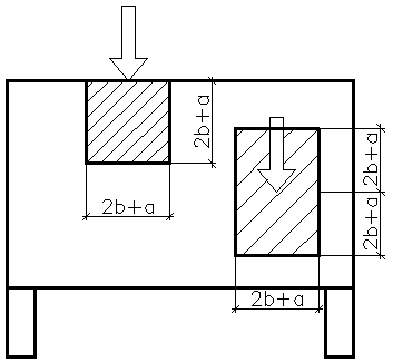 Dimensions of a reinforcement zone where a concentrated force is applied are determined as follows.