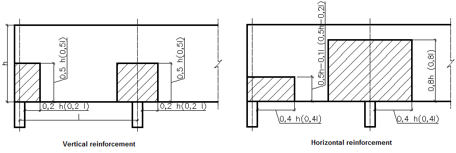 Deep-beam calculations (according to the Polish RC code, apart from the typical horizontal and vertical reinforcement) can generate additional reinforcement zones in the vicinity of supports and in areas where concentrated loads are applied (such as on a distribution area or at a point). This enables the structure to safely carry the stresses concentrating in these areas. To calculate this, the following steps are followed.