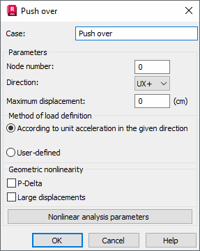 - Nonlinear analysis parameters - Opens a dialog which allows you to set up the options of the nonlinear analysis.