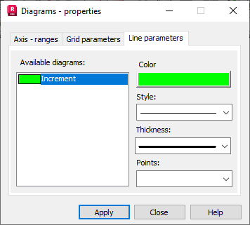 The following dialog is displayed after the Line parameters tab is selected in the Diagrams - properties dialog.