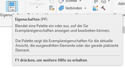 Wenn Sie den Mauszeiger auf ein Werkzeug in der Multifunktionsleiste setzen, zeigt Revit standardmäßig eine QuickInfo an. Die QuickInfo gibt eine kurze Beschreibung des Werkzeugs. Wenn Sie den Mauszeiger für etwas längere Zeit auf dem Werkzeug belassen, werden weitere Informationen angezeigt (sofern vorhanden). Während die QuickInfo angezeigt wird, können Sie durch Drücken der F1-Taste kontextabhängige Hilfe mit weiteren Informationen zu diesem Werkzeug aufrufen.