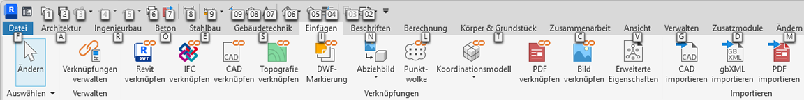 Keytips bieten eine Möglichkeit zum Zugriff auf den Menü-Browser, den Schnellzugriff-Werkzeugkasten und die Multifunktionsleiste über die Tastatur.