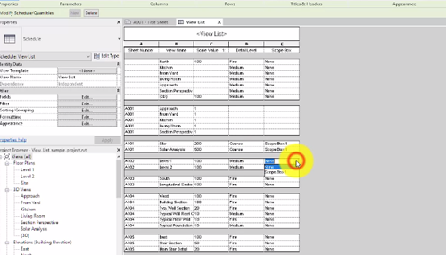 In diesem Lernprogramm erfahren Sie, wie Sie Elemente in einer Bauteilliste anhand der Ansichten filtern, die auf demselben Plan wie die Bauteilliste platziert werden.