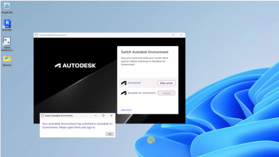 Mit dem Revit-Umschalter-Werkzeug können Sie Ihre Revit-Umgebung von einer gewerblichen Revit-Version in Autodesk for Government und wieder zurück ändern.