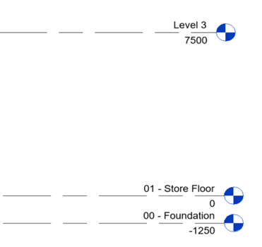 - Klicken Sie im Zeichenbereich auf den Wert für 00 - Foundation, geben Sie -1250 mm ein, und drücken Sie die Eingabetaste, um die Höhe der Ebene zu ändern.