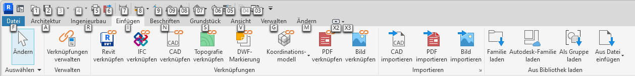 Keytips bieten eine Möglichkeit zum Zugriff auf den Menü-Browser, den Schnellzugriff-Werkzeugkasten und die Multifunktionsleiste über die Tastatur.