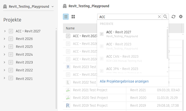 - Zeigt alle Projekte mit dem Suchschlüssel für alle Hubs an.