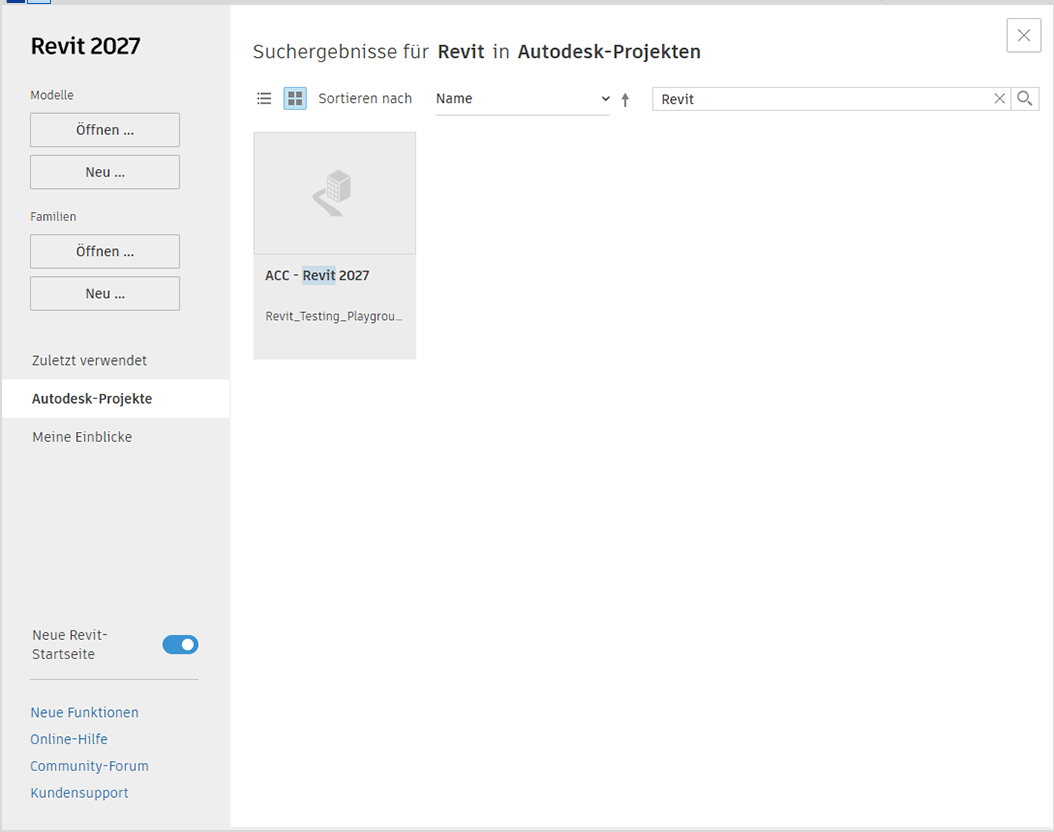 Autodesk-Projekte in allen Revit-Softwareversionen auf der neuen Revit-Startseite anzeigen.