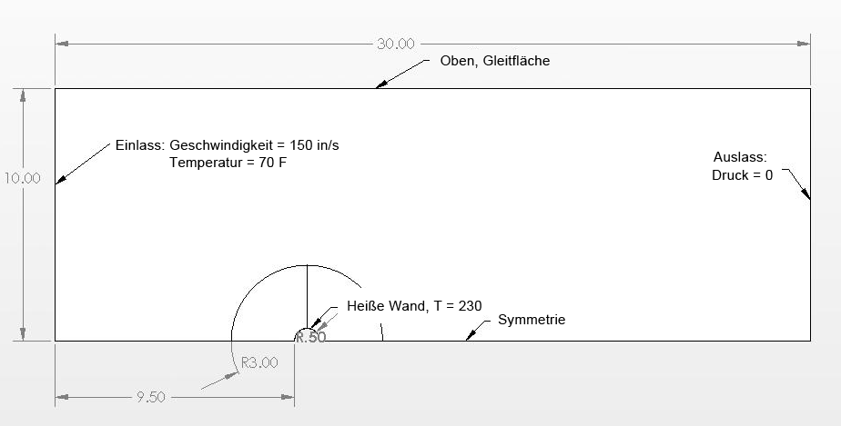 Ein kreisförmiger Zylinder mit einer unendlich langen Achse (und somit als 2D approximiert) wird von einer turbulenten Strömung mit einer Reynoldszahl von 1.0e5 (basierend auf dem Durchmesser des Zylinders) umschlossen. Die Zylinderwand hat eine feste Temperatur. Dieses Problem wird analysiert, um die Wasserströmungs- und Wärmeübertragungs-Modellierfähigkeiten von Autodesk® CFD zu überprüfen.