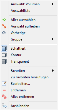 Zum schnellen Zugriff auf häufig verwendete Befehle für die aktuelle Aufgabe klicken Sie mit der rechten Maustaste in das Grafikfenster. Für weitere Befehle zur Steuerung der Darstellung klicken Sie mit der rechten Maustaste auf das Modell.
