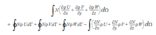 "o" bezieht sich hierbei auf alte Werte. Dieser Ausdruck wird verwendet, wenn die Kontinuitätsgleichung nach Teilen integriert wird. Durch Ersetzen der Geschwindigkeit ergibt sich Folgendes: