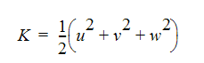 Die Kombination der beiden obigen Gleichungen liefert eine Schätzung für die turbulente kinetische Energie für den Einlass auf der Grundlage der Einlass-Geschwindigkeitsverteilung: