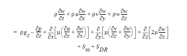Die beiden Quellterme in den Impulsgleichungen dienen zum Drehen von Koordinaten bzw. Strömungswiderständen. Der Strömungswiderstandsterm kann im Allgemeinen wie folgt geschrieben werden: