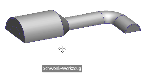 Nachdem Sie "Pan" auf dem SteeringWheel ausgewählt haben, ziehen Sie das Zeigegerät, um das Modell in die gewünschte Richtung zu schwenken. Ziehen Sie es z. B. nach oben, um das Modell nach oben zu schwenken. Oder ziehen Sie es nach unten, um das Modell nach unten zu schwenken. Wenn der Befehl "Pan" aktiv ist, wird der Pan-Cursor (ein Pfeil, der nach vier Seiten zeigt) angezeigt.
