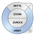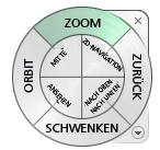 SteeringWheels vereinen auf einer einzigen Oberfläche viele der gängigen Navigationsbefehle. Sie gelten jeweils für den Kontext, in dem ein Modell angezeigt wird.