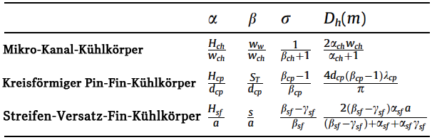 Die folgenden allgemeinen Variablen werden in den Kühlkörperkorrelationen verwendet: