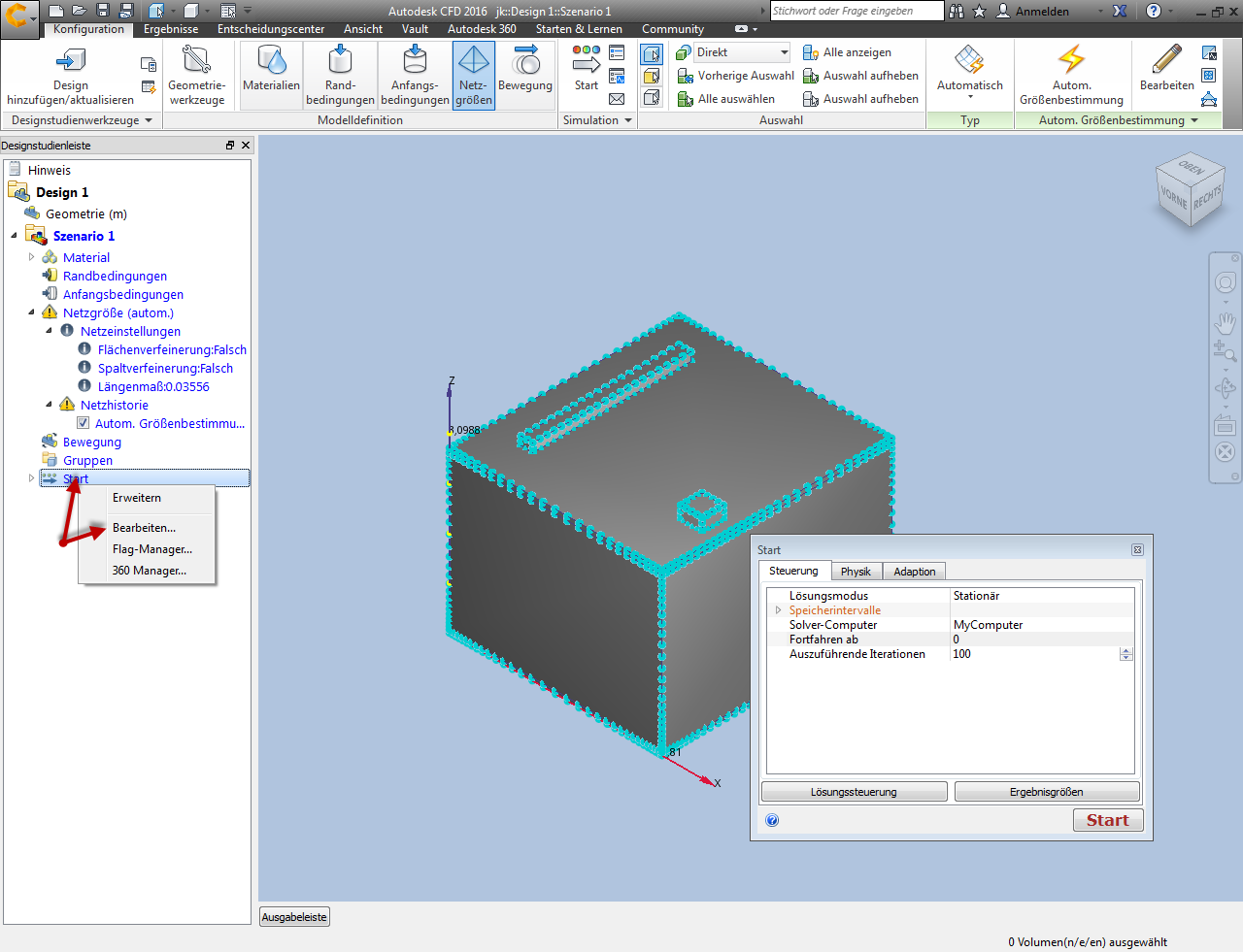 Methode 1: Klicken Sie mit der rechten Maustaste außerhalb des Modells, und wählen Sie Start aus.