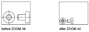 Adjusts the magnification of the drawing area to accommodate the extents of all visible objects in the drawing, or visual aids such as the grid limits (the LIMITS command), whichever is larger.