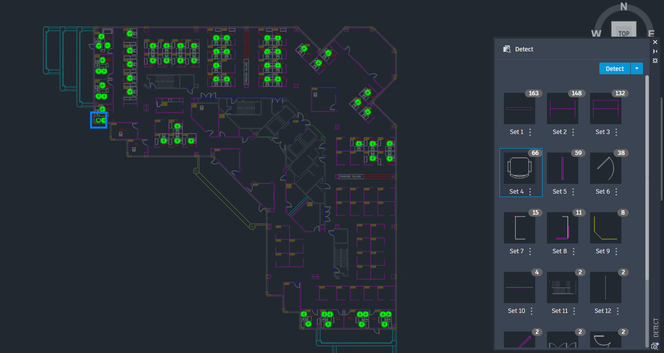 AutoCAD Detect and Convert uses Autodesk AI to scan your drawing and identify objects that can be converted into blocks.