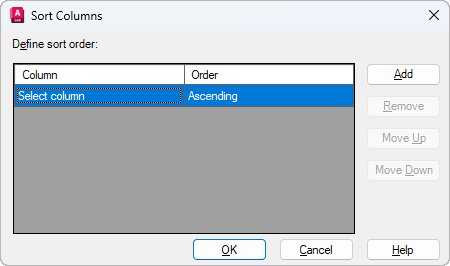 Specifies the sort order of columns. The Column section contains column names from the Refine Data page.