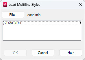 The default file name is acad.mln. If acad.mln does not exist, or if it exists but cannot be found, click File to specify another file or file location.