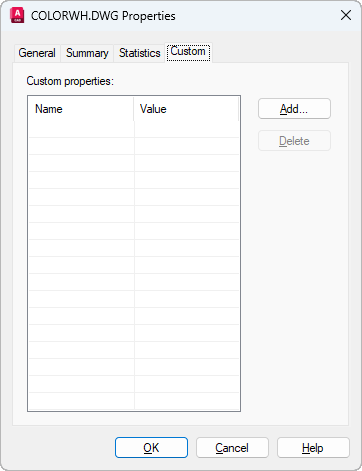Displays the Add Custom Property dialog box, where you can enter a name and a value for the new custom property. The name must be unique. The value can be left blank.