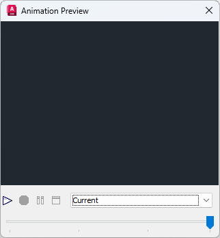 Moves frame-by-frame through the animation preview. You can move the slider to a specific frame in the animation. A tooltip displays the current frame and total number of frames in the animation.