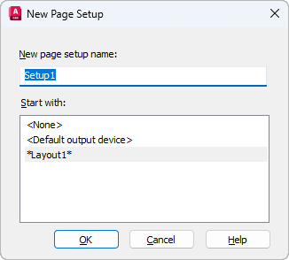 Specifies a name for the new page setup, as well as the page setup to use as a starting point.