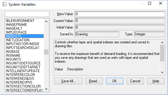 Among over 500 system variables to control AutoCAD behavior, there are several that you can use to improve the handling of large data sets. This section explains first how to access the system variable editor, then provides background information and recommended settings for particular variables.