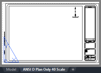 When naming the layouts that you use in plan production templates, you may find it useful to add the scale factor that was used in the viewports to the layout name. The following illustration shows an example of a layout name that includes the scale factor used in the viewport – ANSI D Plan Only 40 Scale.