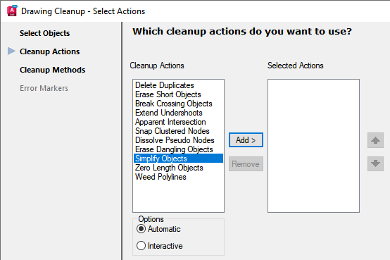 A powerful utility developed for AutoCAD Map 3D is also included with Autodesk Civil 3D. It enables you to delete duplicate objects, weed polylines, and do many other cleanup actions. You can set several parameters to control each action. Access the cleanup tools in one of two ways: