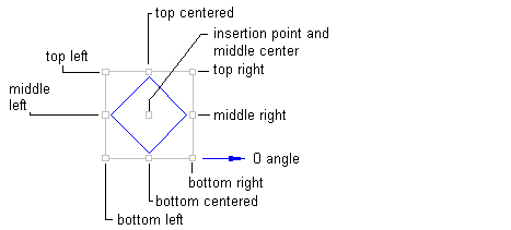 Specifies the location on the block component that is attached to the anchor point. Attachment points are calculated based on a rectangle that encompasses the block, the size of which is determined by including the Gap value specified in the Border category. The following illustration shows block attachment points: