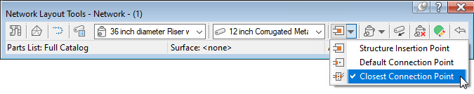 When you're laying out a pipe network, you can select which type of connection point to use. You can also reset the connection points after laying out the pipe network.