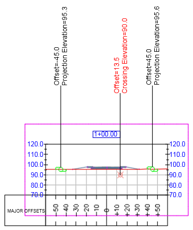 The following illustration shows projections on either side of the corridor at the existing ground level and one crossing below ground level.