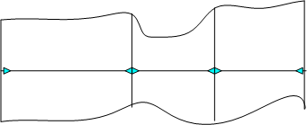 If the start chainage of one region is the end point of another region, the grip at the chainage is displayed as a diamond shaped grip, which enables you to edit the shared extents of the adjacent regions at the same time.