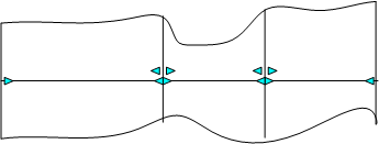 When you select a corridor region, triangular grips are displayed at the start and end chainages of the region. Use these grips to manually change the start and end chainage for a region.