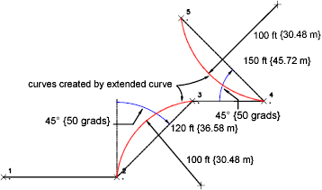 | radius | The distance from a center point to the curve. Enter this value in current survey database distance units. Use a negative radius to draw the curve in a counter-clockwise (left) direction. |