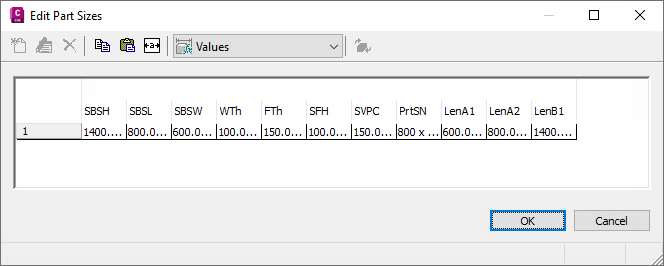 - To add new sizes for the part, click a parameter value and click Edit on the toolbar.