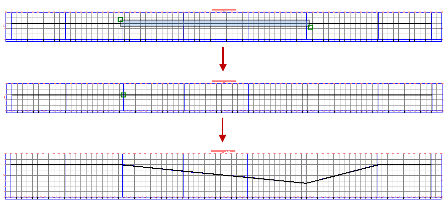 The following illustration shows the selection of the parts, and the point to hold, and the resulting change to the pressure network slope.