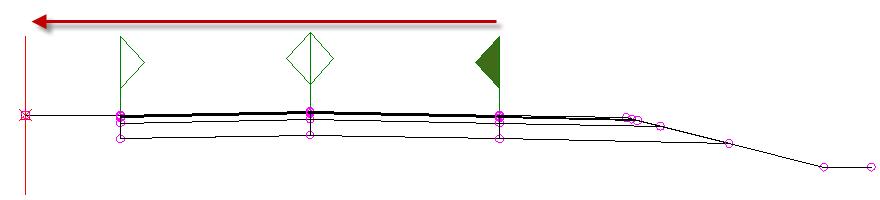 If a subassembly that does not support axis of rotation is found between the pivot point and the baseline, a warning is displayed. If superelevation is calculated, the unsupported subassembly's pivot level difference is ignored in the pivot point calculation. The level of the profile gradient line and pivot point are incorrect.
