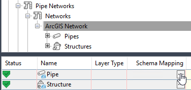Changes that you make to the schema mapping after the pipe network is created will be applied to the pipes and structures that are in the drawing.