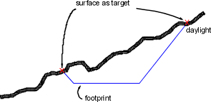 The footprint can be an open or closed figure. The footprint must be either a feature line, a lot line or the resulting daylight line of another grading.